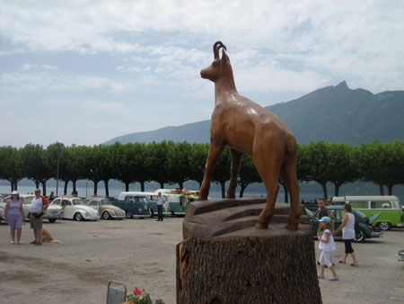 Le 1er meeting de Coccinelles, combis et dérivés d'Aix-les-Bains s'est déroulé du 22 au 24 mai dernier sur l'Esplanade du lac d'Aix-les-Bains. Le samedi, une petite délégation du Lémania Coccinelle Club s'est déplacée en France voisine pour participer à cette première. Un soleil omniprésent aura permis aux membres du Lémania de passer une journée aussi sympathique que mouvementée! Sympathique, car il est toujours très agréable vivre sa passion en compagnie d'autres passionnés et mouvementée car c'est sur le pont d'un camion du TCS que notre cher président Olivier Guignard a regagné ses pénates, le moteur de son cabriolet ayant surchauffé et serré suite à une fuite au niveau du radiateur d'huile. |