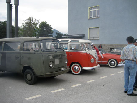 La 5e édition du meeting Oldtimer Valais s'est déroulé à Sion le samedi 30 mai dernier. Parti de Vevey sous un soleil radieux (… et sans une petite laine), j'ai eu la désagréable surprise de découvrir à Sion un temps maussade, frisquet et même pluvieux. Qui a dit qu'il faisait toujours beau en Valais? Cependant, malgré cela, le bilan de cette 5e édition est très encourageant et extrêmement positif aussi bien sur le plan quantitatif que qualitatif. Dans une ambiance des plus conviviale, l'édition 2009 a accueilli une large diversité de véhicules, que ce soit au niveau des marques, modèles et des décennies représentées. Parmi les quelque 330 véhicules présents, j'ai pu admirer une bonne vingtaine de Volswagen "air-cooled" dont près de la moitié provenait du Lémania Coccinelle Club. Olivier |