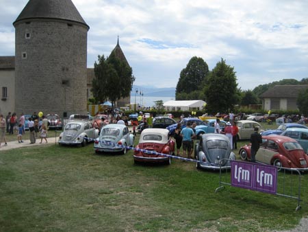 La 5e édition du meeting de Rolle, manifestation bisannuelle comme le meeting de Château-d’Oex, s’est déroulé du 10 au 12 juillet 2009. Bénéficiant, comme la plupart des meetings de cette année, d’une magnifique météo, cette manifestation a à nouveau connu un très beau succès. On a pu apercevoir à Rolle de très beaux véhicules exposés dans un cadre grandiose. Personnellement, j’ai bien apprécié le petit clin d’œil à Château-d’Oex avec une Cox cabriolet de 1951 contenant des valises d’époque dont l’une était étiquetée de Château-d’Oex à Lausanne. Sympa! Comme l’était l’animation de Sumo. Vu la proximité géographique du meeting, il n’y a pas eu de caravane pour se rendre à celui-ci. Cela n’a pas empêché un grand nombre de membres du Lémania de participer à ce magnifique meeting placé au début des vacances estivales. Olivier |