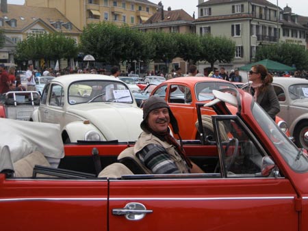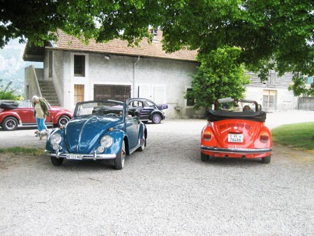 Il est rare que la tribu du Lemania se déplace au bout du lac Léman « de dieuuu de dieuuu » comme ils disent dans ce tout petit canton. C’est qu’il faut se lever tôt pour être à 08h30 chez AMAG au Petit Lancy, ce magnifique dimanche 10 mai. Et ce n’est pas notre Caissier et notre Président qui diront le contraire, sauf qu’eux, ils se sont perdus avant de commencer le rallye, malgré le plan détaillé de l’écho n° 105 !?! Bref, après un accueil sensationnel des organisateurs et d’AMAG, avec croissants et cafés, le départ est donné à 09h00 précises, les équipages partant avec une précision à la minute. Bizarre, sur la route du premier poste, nous croisons et recroisons quelques participants partis visiter le jet d’eau à la place de partir dans la direction des grands HLM de la banlieue. Après la ville et ses a-bords, les organisateurs nous font passer dans une magnifique région campagnarde et vinicole que nous ne connaissions pas. Il faut dire qu’ils ont aussi de magnifiques petits villages, au bout de la Suisse. De poste en poste, un questionnaire bien détaillé nous oblige à répondre aux énigmes en demandant les réponses à une population étonnée de voir autant de Coccinelles. Le podium
