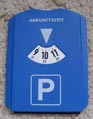 Disque de stationnement Avec 3 jetons pour caddies. Couleur : Bleu avec le logo du club en noir |