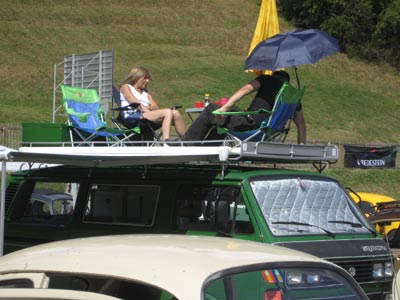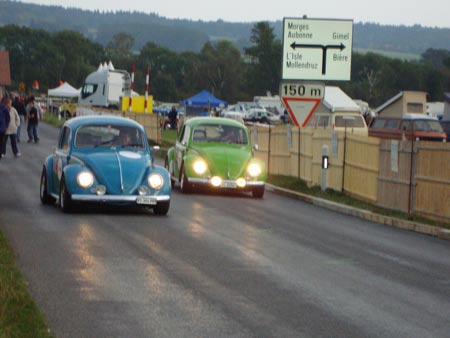 La 16e édition du meeting int. VW à Château-d’Oex qui s’est déroulée du 28 au 30 août dernier a été un succès total. Comme cadeau d’anniversaire, le Lémania Coccinelle Club ne pouvait rêver mieux. Malgré une météo annonçant quelques averses pour le vendredi soir, pas une goutte de pluie n’est venue refroidir l’ambiance du meeting. Le soleil a vraiment été le maître du week-end avec une mention spéciale pour le dimanche où pas un nuage n’a terni le bleu immaculé du ciel! Il fallait bien cela pour m’enlever un peu (beaucoup) de pression car, suite au départ de pas moins de 5 membres du comité après l’édition anniversaire de 2007, ce 16e meeting int. VW à Château-d’Oex était celui de tous les dangers. Eh oui, vous l’aurez certainement bien compris, j’étais cette année particulièrement tendu avant le début du meeting. Et pas seulement à cause des nombreux changements intervenus au comité d’organisation à des postes aussi importants que l’approvisionnement ou la gestion des bénévoles, mais également par le fait que maintenant que le rythme de croisière d’un meeting tous les 2 ans est bien établi, le danger de se reposer sur ses lauriers est grand. Alors, vous pensez bien que quand tout se déroule à la perfection, la «délivrance» est d’autant plus belle. Je ne peux que dire merci. Merci à tout le comité d’organisation qui s’est dépensé sans compter avant, pendant et après le meeting pour en assurer le succès. Un merci spécial à tous les nouveaux du comité, vous vous en êtes sortis haut la main. Vous m’avez vraiment «bluffé» ! Merci à tous les bénévoles qui, une fois de plus, se sont sont associés aux membres du club pour porter bien haut les couleurs du Lémania Coccinelle Club. L’excellente réputation dont jouit le meeting de Château-d’Oex vous revient de plein droit. Et merci à «Jean Rosset» qui, après avoir boudé notre meeting en 2003, 2004 et 2005, a fait un retour aussi omniprésent qu’apprécié en 2007 et 2009. Olivier Retour en images sur un week-end de rêve : |