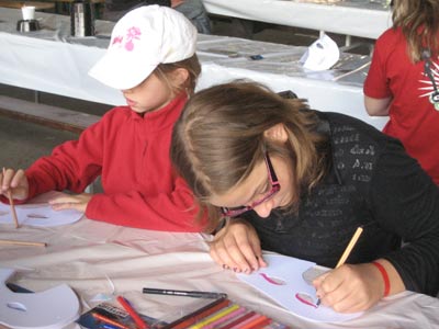 Le meeting de Château- d’Oex ne serait rien sans le travail efficace des quelque 160 bénévoles. Alors MERCI à vous tous! | Les personnes affectées à la circulation ont inauguré les nouveaux et magnifiques gilets de sécurité offerts par Johnny Ravussin, membre du comité élargi et responsable de ce dicastère. | Si le bal masqué a constitué le seul flop du meeting (très peu de déguisements et aucun masque utilisé), l’atelier de décoration des masques a par contre connu un beau succès auprès des enfants. |