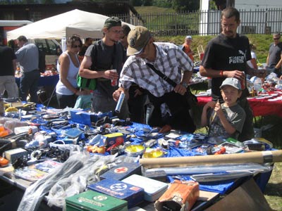 Grâce à Amag, le musée VW nous a amené une rareté puisqu’il s’agit d’une pièce unique : la VW coupé de Ghia-Aigle. Ce véhicule a été construit en 1956 par la carrosserie Ghia Aigle. | Le groupe tessinois RaTatAgnöl a tenu la vedette le samedi soir jusqu’au spendide feu d’artifice tiré pour célébrer les 20 ans du Lémania, les 60 ans de la Coccinelle cabriolet, les 40 ans du 181 et de la VW-Porsche et enfin les 30 ans du Transporter! | A l’instar du Bug Show, les stands de pièces anciennes étaient particulièrement bien achallandés! |