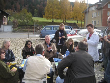 En élaborant le programme de cette journée de clôture du 20e anniversaire du Lémania Coccinelle Club, nous devions être soit complètement inconscients, soit pourvus d’un optimisme demesuré. Prévoir un pique-nique un 31 octobre, on n’a pas idée! Et pourtant Jean Rosset ne nous a pas abandonnés pour cette dernière sortie de l’année et a bien voulu nous inonder de ses magnifiques rayons! Partis de Monthey, Vevey, Cossonay, Yverdon ou Genève, nous nous sommes retrouvés aux Bioux, sur le parking de la fabrique d’horlogerie ETA) pour l’apéro et le pique-nique. Après quoi, nous sommes partis en direction de Gingins, via une halte-café au Rocheret de l’autre côté du lac de Joux. Cette balade à travers le Jura aux superbes couleurs automnales a été une vraie merveille! A Gingins, la visite fort intéressante du musée romand de l’agriculture et le souper de gala qui a suivi ont mis un magnifique point final aux célébrations du 20e anniversaire du Lémania Coccinelle Club. Nul doute que cette année 2009 fera date dans les annales du club! Olivier |