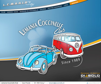 Un tout grand merci à Raphaël d’avoir accepté cette nouvelle responsabilité. 10) Admission-démissions Admissions 2009 Démissions 2009 Etat des membres au 31 décembre 2009 11) Programme 2010 12) Communications du comité - Le nouveau site internet du Lémania est activé depuis peu. Ce projet a abouti après 4-5 ans de travaux. Une brève présentation de son fonctionnement est effectuée par Olivier. Vous pouvez trouver notre site à l’adresse suivante: www.coccinelle.ch La partie “club” du site sera disponible en français tandis que la partie “meeting” sera prochainement disponible en français-allemand-anglais. Les remerciements du comité vont à la commission qui a proposé l’organisation du site ainsi qu’à Diabolo Design (agence de Marc Feldman) pour tout le travail accompli. - Fabienne Vernier, responsable de la boutique, indique que les prix des objets proposés dans le dernier Echo avaient été calculés pour 1 objet. Si la quantité de la commande augmente, le prix peut diminuer. Elle a apporté à l’assemblée quelques exemples de vestes, pulls, polaires... afin que chacun puisse se faire une meilleure idée. L’idée est d’effectuer des commandes qui laissent un peu de stock. Les invendus pourraient être mis en vente lors du prochain meeting étant donné qu’ils ne sont pas datés. 13) Divers et propositions individuelles - Alain Saugy nous donne les dates du meeting de bus d’Hockenheim: les 26 et 27 juin 2010. - Simone Cevey trouve que le Lémania a mal fini son année. Elle aurait souhaité que le repas de fin d’année soit dissocié de celui des bénévoles, même si la journée dans le Jura s’est déroulée de manière très agréable. Le comité prend note de sa remarque. Plus personne ne désirant prendre la parole, Olivier procède au tirage au sort des gagnants du jeu de l’énigme. Les |