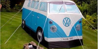 Dès que je l’ai vue, j’ai eu le coup de foudre ! Et 6 mois plus tard, j’ai craqué et je l’ai achetée ! Quand on est passionné de VW « air-cooled », comment ne pas aimer cette tente de camping en forme de bus VW split ? Et comble du raffinement, on peut même choisir son numéro de plaque (une option facturée 14,95 £). Pour moi, je n’ai pas eu à prendre cette option puisque la plaque du bus est millésimé 1965, comme ma Coccinelle cabriolet ! Je me réjouis déjà du meeting de Molsheim où j’aurai l’occasion de l’inaugurer. Magasin : The Monster Factory, basé en Angleterre Pour un tel objet, le prix est raisonnable. Toutefois, la mauvaise surprise vient de TNT Swiss Post qui m’ont envoyé une facture de 107,90 francs pour les frais de dédouanement. Après un téléphone à cette entreprise, j’ai pu faire baisser la facture de 22,50 francs (ils avaient compté la TVA sur le montant de la tente majoré des frais de port). Au final, la tente m’est revenue à 590 francs. Quand on aime, on ne compte pas ! Olivier |