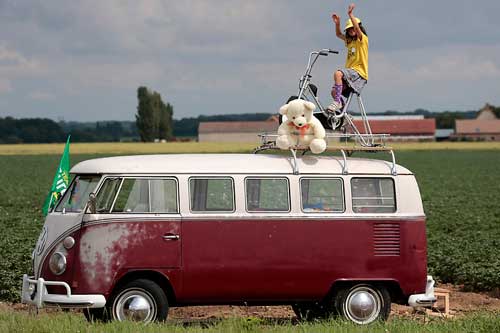 En juillet dernier, notre membre belge Bart Pelemans a participé au meeting de Menton et a également suivi le tour de France en combi T1 pendant une semaine avec sa fille Linh. Et oh surprise, le Monde a publié une très belle photo de Linh installée sur le toit du combi T1. Cette photo a depuis fait le tour du monde car elle s’est trouvée également sur le site web de journaux américains, russes, chinois… |