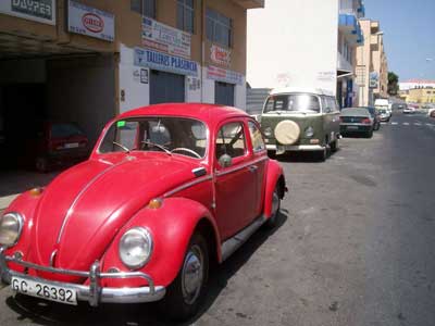 Partis le 11 août en vacances aux Grandes-Canaries et en nous promenant, nous avons découvert, garés sur le bas côté de la route un bus et une cox l’un derrière l’autre. Aussitôt on stoppe la voiture de location pour aller faire des photos, mais là notre surprise a été grande quand nous avons découvert qu’en fait les deux cachaient un garage où il y en avait d’autres.