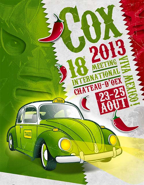 Autre membre démissionnaire, du comité élargi cette fois, en la personne de Ginette Guéret. Elle s’est occupée du bureau de change durant les deux derniers meetings après avoir oeuvré de nombreuses années comme bénévole à l’accueil. Le comité la remercie pour le travail accompli durant toutes ces années. Renouvellement de la commission de gestion C’est Philippe Roth qui sera 1er rapporteur l’an prochain. Alain Saugy, qui aurait dû être second rapporteur, ne pourra pas l’être en raison de son élection au sein du comité. C’est Frédéric Thumelin qui hérite donc de cette tâche alors que Christophe Howald occupera le poste de remplaçant. Admission – démission Admissions 2012 : Démissions 2012 : Etat des membres au 31 décembre 2012 : Château-d’Oex 2013 - Le thème du 18e meeting sera ”Viva Mexico”. Il est en rapport avec l’arrêt de la production de la Coccinelle qui a eu lieu le 30 juillet 2003, soit il y a 10 ans. - L’affiche du meeting est présentée à l’assemblée. Vous pouvez l’admirer en dernière page de cet écho. Merci à Marc Feldman et à son équipe pour sa réalisation. Elle ne manque pas de piquant! - Le comité montre également la plaquette de présentation du meeting qui est remise aux sponsors. Il note que la recherche de sponsors est rendue de plus en plus ardue en raison des difficultés financières des entreprises. Si des membres ont des idées, des adresses, ils peuvent en faire part au plus vite aux membres du comité! - Lors de la dernière assemblée générale, quelques personnes avaient proposé de créer une commission ”Animations”. Cela a été réalisé. Vous trouverez ci-dessous la présentation de cette commission par l’un de ses membres, Fabienne Vernier: ”Chers membres du comité, chers membres du club, Comme tout le monde le sait, l’anniversaire de la fermeture de la dernière usine qui fabriquait cette magnifique voiture a donné l’idée au comité de tirer un grand coup de chapeau au Mexique. Et c’est donc sur ce thème que nous planchons depuis notre première réunion le 20 juin 2012. Chacun, chacune amène ses idées dans la joie et la bonne humeur. Tandis qu’Alex nous trouve un hangar, Patrick a déjà fait le décompte du matériel à disposition. Claudine cherche la colle, Audrey un costume et un fournisseur de bois, Maxime d’un coup de crayon réalise sur papier nos rêves, alors que Raphaël, notre caissier, fait la liaison entre le comité et nous, moi j’essaie de prendre des notes, de résumer, afin qu’on oublie rien. Bref, afin de ne pas vous effrayer, je ne vous donne pas tous les détails, mais ne vous inquiétez pas, nos listes de travaux sont bien remplies. Qui dit Mexique, dit ambiance vacances, soleil, chapeau... Pour les voitures, comme nous l’avons déjà utilisé sur le thème du cinéma, une Coccinelle à Mexico, nous misons cette fois sur la Cox version taxi. A ce sujet, nous lançons un grand SOS, nous cherchons au plus vite 2 véhicules, à donner, une cox et un bus, état roulant et tournant, que l’on peut transformer. Grâce à ce petit résumé, nous espérons vous avoir mis l’eau à la bouche et fait fonctionner votre imagination, et merci de nous aider à trouver nos véhicules. Vivement le 23 août pour faire la fête!”
