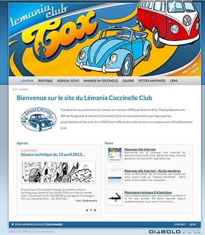 C’est fait ! Ceux qui ont pris l’habitude d’aller consulter régulièrement le site internet du club l’ont déjà remarqué, notre nouveau site internet est en ligne depuis le 26 février dernier. Tout neuf, tout beau, il comporte de nombreuses améliorations par rapport à l’ancienne version. Citons dans le désordre, une galerie photos digne de ce nom qui ne demande qu’à s’enrichir, des vidéos, des bulletins d’inscription en ligne pour les sorties du club, une page de ”news” bien en évidence, la possibilité de placer plusieurs photos dans les petites annonces, la partie meeting réaménagée pour une meilleure information et enfin un espace réservé exclusivement aux membres du club. Pour pouvoir accéder à cette zone membres, il faut en faire la demande expresse auprès du club. La marche à suivre est bien expliquée dans un document que l’on peut télécharger sur le site du club (page Actualités – Nouveau site internet – accès membres). Pourtant, toutes ces améliorations et nouveautés ne sont que la partie visible de ce nouveau site. Un gros travail a en effet été fait en amont pour en faciliter sa gestion, ce qui améliorera grandement son interactivité. Que tous les membres qui n’ont pas accès à internet ou les ”réfractaires” au web se rassurent, notre nouveau site internet ne remet pas en cause la version papier de notre journal du club. Cependant, avec 5 parutions par année, il est difficile d’être continuellement au cœur de l’actualité. Grâce à notre site internet, nous allons pouvoir compenser ce gros désavantage. Notre journal ”écho” version papier et site internet sont donc complémentaires et vont évoluer en étroite collaboration ! Alors plus que jamais, ne manquez pas d’aller consulter régulièrement notre site www.coccinelle.ch. Vous serez ainsi certain de ne rien manquer des activités du club! Bonne lecture et à bientôt sur les routes de Suisse romande ! |