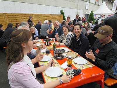 Le souper de remerciement «Château-d’Oex 2013» offert à tous les bénévoles qui ont contribué au succès de cette importante manifestation s’est déroulé le samedi 29 mars dernier à Château-d’Oex. Comme pour la précédente édition, 2 parties de bowling étaient proposées en guise d’apéro. Pas moins de 63 personnes (augmentation de 50% par rapport à 2012) se sont ainsi retrouvées à 16h00 au bowling de Château-d’Oex pour en découdre dans une atmosphère très fair-play. Le concours a été dominé par les habitants du cru puisque dans la catégorie adultes Stephan Grand n’a laissé aucune chance à ses adversaires alors que son fils Andreï en a fait de même dans celui réservé aux enfants! Le souper s’est déroulé quant à lui au buffet de la Gare de Château-d’Oex. Au menu, entrée salade mêlée, fondue bourguignonne à gogo, dessert. Un excellent repas qui a comblé les 93 bénévoles présents. A l’heure des cafés, Patricia Wenger ne manqua pas de remercier encore une fois très chaleureusement tous les bénévoles pour le travail extraordinaire accompli tout au long du week-end du meeting. Puis, la soirée s’est terminée par le traditionnel loto, un loto particulièrement relevé avec un montant total des lots dépassant les 1'600 francs ! Signalons enfin pour être complet, que 40 personnes ont profité de l’occasion qui leur était offerte de dormir sur place dans le magnifique chalet «La Cheneau» des écoles de Vevey. Encore un un grand merci à tous les bénévoles ainsi qu’à Patricia Wenger et Stephan Grand pour la parfaite organisation de ce ma-gnifique souper de remerciement.