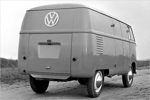 Le bus VW fête donc cette année ses 65 ans. A l’instar de la VW Karmann-Ghia qui célèbre quant à elle ses 60 ans, une exposition lui sera consacré dans la halle Landi à l’occasion de notre 19e meeting int. VW à Château-d’Oex. C’est donc le 8 mars 1950 que la cons-truction en série des premiers exemplaires commence à Wolfsburg, avec la production du modèle tôlé de la gamme, appelé Transporter ou encore Kastenwagen. Fait impensable aujourd’hui, les premiers bus VW étaient livrés sans pare-chocs à l’arrière contrairement à l’avant qui lui en était équipé. Sur le modèle Samba, apparu au ca-talogue en 1951, les pare-chocs avant s’agrémentent de deux joncs en aluminium comportant en leur centre une bande de caoutchouc noire. La face arrière reçoit ces mêmes joncs, mais directement fixés sur la carrosserie. Ce n’est que plus tard, que de véritables pare-chocs arrière seront montés sur l’ensemble de la gamme des bus VW. Question :En quelle année le pare-choc arrière a-t-il fait son apparition ? a) 1953 b) 1954 c) 1955 d) 1956