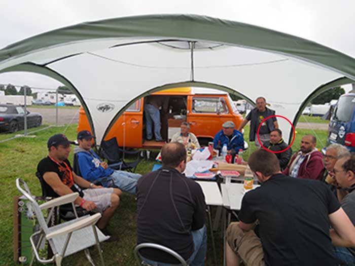 Il y a 4 ans, sur le chemin du retour de mon périple au 9e Veteranen Treffen de Bad Camberg, je ne pensais qu’à toutes ces ovales et ces splits que je venais d’admirer. Un mois plus tard (et après la vente de 2 VW…), j’avais une split dans mon garage ! Ce meeting a été pour moi le déclencheur de cette dévorante passion qu’est la VW ancienne ! Quoi de plus normal donc que d’y retourner cette année… en split ! Le départ est donné vendredi 19 juin à 05h00 du matin direction Bâle où nous attendent plusieurs cox suisses, avec entre autres une split de 1948, se rendant également au meeting. Je peux vous assurer qu’il n’y a rien de plus sympa qu’une caravane de sept VW anciennes “fonçant“ sur les “autobahn” allemandes ! Arrivée sur place à 13h30, le meeting commence gentiment à prendre vie. Les premières VW prennent place sur le gazon et les vendeurs du swap-meet déballent leurs pièces. Cette année encore, beaucoup de très belles VW venant des quatre coins de l’Europe, voir de plus loin, pour preuve, la présence de passionnées indonésiens avec leur rare cabriolet Hebmüller ! Mais comme toujours dans ce genre de meeting, la journée passe à une telle vitesse que c’est déjà l’heure de rentrer à l’hôtel pour une bonne nuit car le lendemain une longue journée nous attend. Le samedi est entièrement dédié à détailler les véhicules et à farfouiller sur les stands des vendeurs de pièces pour trouver l’accessoire qui manque ou le goodie qui fera la différence. Une des autres choses sympathiques de ces meetings, c’est aussi de revoir les copains et de s’en faire des nouveaux. C’est vraiment ça qui est génial dans le mouvement VW ! Le dimanche est une répétition du samedi, mais en plus court. Pas mal de participants ayant beaucoup de kilomètres pour rentrer, vers 16h il n’y a presque plus personne sur le meeting. Ayant prévu de rentrer tranquillement le lundi, nous avons passé la soirée avec des passionnés Belges et Bretons qui nous ont accueillis à bras ouverts pour un apéro… prolongé. Un très chouette moment ! Pour la petite histoire, j’ai fait une rencontre assez insolite le dimanche. Les plus anciens du club se souviennent sûrement du 3e meeting de Château d’Oex durant lequel, en guise d’animation, un jeune passionné français venu en Coccinelle split de 1951 se voyait offrir une peinture complète, réalisée le temps du mee-ting ! C’était en 1993… Et bien 22 ans plus tard, j’ai retrouvé cette split à Bad Camberg ! Elle coule désormais des jours heureux en Angleterre, sa peinture étant toujours celle faite en 1993 ! Pour conclure, en terme de décors et de véhicules présents, cela ne vaut pas le meeting vintage d’Hessisch Oldendorf, qui est vraiment le must en la matière, mais le meeting de Bad Camberg a le mérite d’être le pion-nier du vintage VW et rien que pour cela j’y retournerai dans 4 ans !