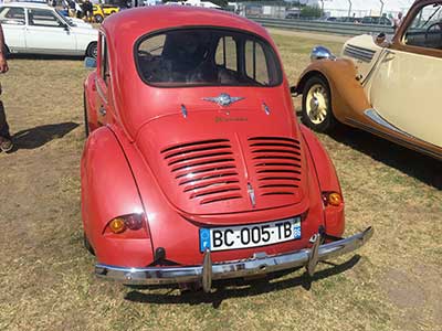 Question :Quelle pièce a été empruntée à la VW Coccinelle 1200 sur la partie arrière de cette 4 CV ? Une fois n’est pas coutume, il n’y a pas de réponses à choix. |