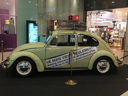 Comme en 2017, Manor, à nouveau sponsor du meeting int. VW à Château-d’Oex, nous a offert la possibilité d’exposer une voiture au centre commercial St-Antoine de Vevey. Cette fois, c’est la Coccinelle de notre vice-président Maxime Amstutz, magnifiquement décorée pour l’occasion, qui a tenu la vedette du 19 au 24 août pour le plus grand plaisir des clients de ce grand centre commercial.