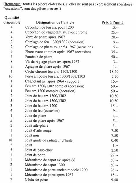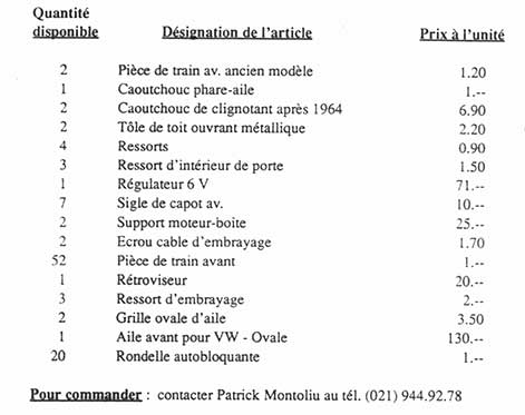 A l’image de la page de couverture, ce 15ème écho sera dans une très large mesure consacré à notre 2ème meeting international Volkswagen de Château-d’Oex qui se déroulera, rappelons-le, les 4, 5 et 6 septembre prochain. Nous pourrons ainsi vous renseigner très précisément sur le déroulement de cette grande manifestation internationale, l’état actuel des préparatifs ou encore sur le rôle que chacun d’entre nous sera appelé à jouer. Une fête de la Volkswagen qui n’attend plus que le soleil et une participation massive des membres du club pour connaître le succès. Par ailleurs, le club a acheté dernièrement un stock de pièces détachées neuves et d’occasion. Vous trouverez à l’intérieur de cet écho la liste complète des pièces disponibles avec leur prix. Des prix en moyenne 40 à 50% meilleur marché que ceux que l’on trouve actuellement sur le marché. Alors, n’attendez pas d’être en panne ou dans le besoin avant de passer commande. Les premiers arrivés seront naturellement les premiers servis ! Enfin, vous trouverez en fin de journal le programme complet de nos prochaines sorties (Monza les 13 et 14 juin, Alsacox 92 les 27 et 28 juin et Yverdon le samedi 4 juillet). Des sorties qui s’annoncent sous les meilleurs auspices et auxquelles vous serez nombreux, nous l’espérons, à y participer. |