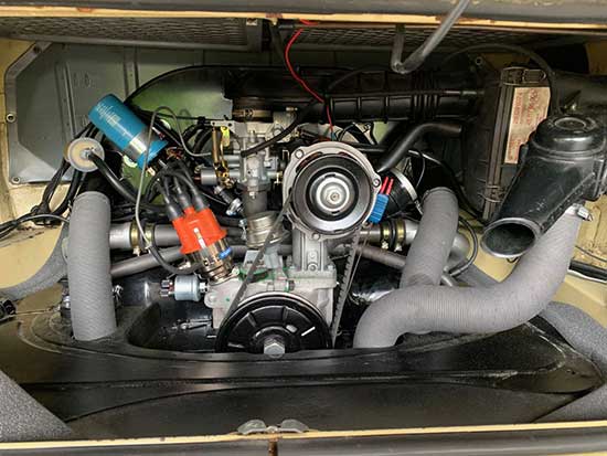 En plus de son cabriolet 1967 dont il a entièrement refait l’avant (cf écho 159), Marc Bonvallat a profité de l’hiver pour revoir entièrement le moteur de son bus Bay Window Westfalia de 1975. Même si le look et le numéro de série restent identiques, tout est neuf. 1850 cm3, radiateur d’huile supplémentaire, pot en inox, il tourne à mervelle et ne chauffe plus!