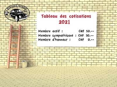 Pour 2021, il n’y aura pas de changement au niveau des cotisations. Le montant reste identique à celui des années précédentes (voir le tableau ci-dessous). L’envoi du montant de la cotisation dans une enveloppe à l’adresse du club (comme certains le font déjà) est aussi possible.
