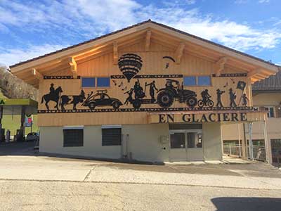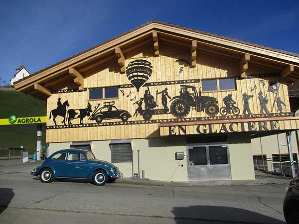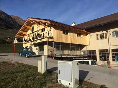 Une annexe au bâtiment Landi situé à l’entrée du village de Château-d’Oex juste à côté du terrain ”En Glacière” où se déroulent entre autres le festival des Ballons et notre meeting international VW ”air-cooled” vient d’être construite sur le toit de la laiterie et du local qui nous sert de bureau des bénévoles. |