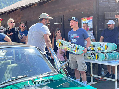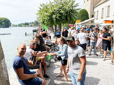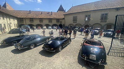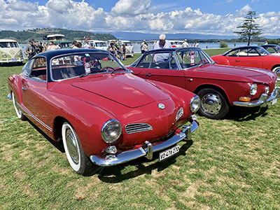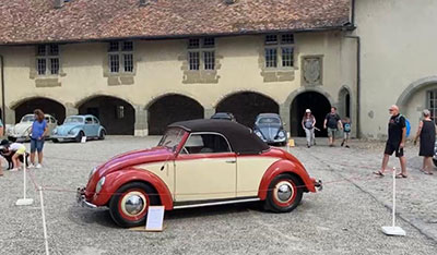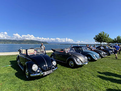 Une splendide météo nous a accompagnés tout au long de ce meeting organisé par l’association Côte’n Cox. Malgré le fait qu’il y avait en cette fin août plusieurs rencontres ou meetings organisés aux 4 coins de la Suisse romande, 248 passionnés sont venus partager la convivialité dans l’enceinte du magnifique château de Rolle au bord du lac Léman. La cour intérieure était joliment garnie de nos chères anciennes Coccinelle splits et ovales avec la présence d’un cabriolet Hebmüller qui représentait le dessin de l’affiche du meeting, sans oublier quelques Porsche 356, 550 ou speedster d’origine ou en réplique. Des animations sur le lac (test de paddle), un paintball, des jeux de sociétés et un petit concert le samedi soir ont rendu l’atmosphère sympathique et conviviale. Ce qui est le but recherché à chaque édition. Un beau top 10 le dimanche avec des prix originaux faits par l’organisation : des pendules en tôle peintes et strypées sur un socle de bois. Le tout s’est terminé avec une tombola, l’argent récolté ainsi que le petit bénéfice ayant été reversé au passeport vacances de la commune de Rolle, afin d’aider les jeunes enfants à partir quelques jours. Au non du comité, je tiens à remercier les participants, sponsors et la commune de Rolle. Notre prochaine édition sera fin août 2024. En attendant, tous… à Château-d’Oex 2023.