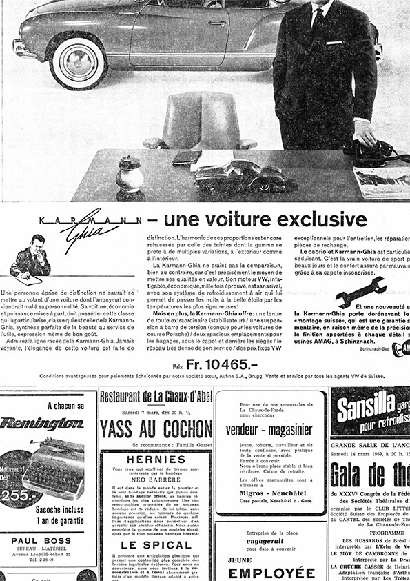 En lisant attentivement l’ancienne annonce Amag ci-contre (même si le bord droit est rogné, on arrive assez facilement à deviner les mots manquants), les initiés au monde VW air-cooled trouveront des éléments qui pourront leur permettre de répondre à la question : de quand date cette annonce ? Les néophytes pourront également répondre facilement en détaillant bien cette image (comme le texte est assez petit, l’usage d’une loupe peut s’avérer utile) ! Qui cherche, trouve ! |