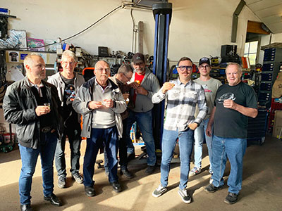 Samedi 22 octobre, huit membres du Club se sont réunis pour la traditionnelle séance technique au Garage de Champagne. Nous n’étions pas beaucoup, plusieurs membres qui s’étaient annoncés se sont excusés, terrassés soit par des virus, soit par des vaccins ou peut-être des bactéries présentes dans l’essence qui stagnent trop longtemps dans nos réservoirs de cox ou de bus lorsque qu'on ne roule pas en hiver, vu que l’essence contient actuellement des biocarburants qui permettent leur prolifération si elle y reste plus que six mois, comme nous l’a expliqué Alain Viret, notre maître en mécanique. Alain Viret en pleine explication ! Après l'effort, le réconfort ! |