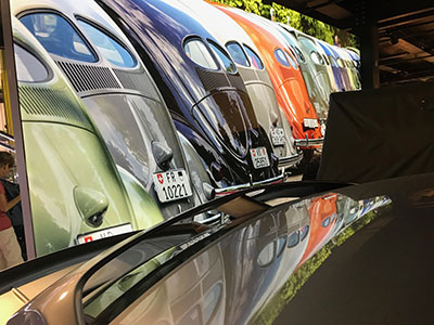 Comme je l’ai déjà écrit dans les précédents échos, Amag fête cette année les 75 ans de la Coccinelle en Suisse. Parmi toutes les manifrestions organisées pour marquer dignement ce jubilé, figure une exposition spéciale au musée des Transports de Lucerne. Une exposition programmée en 4 temps pour mettre en avant les VW «air-cooled», les VW «water-cooled», les bus VW et les véhicules spéciaux. L’exposition sur les VW «air-cooled» étant programmée jusqu’au début août avant de céder sa place aux VW avec refroidissement à eau, l’occasion était belle pour organiser la sortie d’été du Lémania Coccinelle Club au musée des transports de Lucerne.