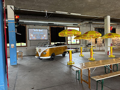 Une fois de plus, la boutique du club avait fière allure. Fabienne Vernier et toute son équipe ont réalisé un travail incroyable pour tout mettre en place ! | Notre nouveau partenaire ”bière” présent avec son magnifique T2b, n’a pas regretté sa présence. Plus de 3'500 litres de bière ont été écoulés ! |