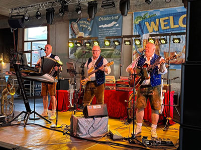 Thème oblige, un orchestre de circonstance s’est produit à plusieurs reprises dans la halle Landi, mettant à chaque passage une sacrée ambiance ! Le dimanche, un orchestre local s’est produit devant la boutique. |