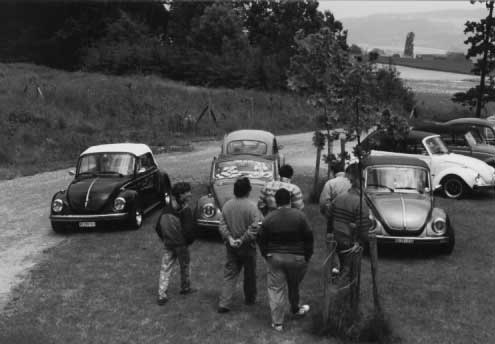 28 et 29 mai 1994 Un départ de bonne heure depuis Château-d’Oex, avec des retrouvailles au restoroute de Villette. Patrick Bezençon nous attendait avec impatience. Après une petite pause, nous continuons l’autoroute en direction de Grenoble. Le soleil étant de la partie, le paysage se révèle d’une magnificence totale. Le parcours aller s’effectue en trois heures et demie sans encombre. Accueil sympa de l’organisation avec rafraîchissements et nous nous installons en un clin d’oeil. Le temps de peaufiner le nettoyage des autos et de s’organiser correctement, le salon a ouvert ses portes. La formule choisie du “salon” était formidable ! Les voitures ont été exposées derrière des barrières en bois; il était impossible de les toucher. Les propriétaires s’en réjouirent et certains présentèrent une foule d’objets. Les spectateurs évoluèrent dans des allées recouvertes de tapis rouges, au gré des call-looks et des restos. Le Lémania Coccinelle Club était présent avec deux Coccinelle et un buggy. Aucune autre voiture étrangère n’avait fait le déplacement, nous représentions donc la Suisse. En fin d’après-midi, les voitures furent enfermées et surveillées par une équipe de vigiles avec des chiens (sécurité de haut niveau). Nous partîmes donc en autocar pour une balade dans le Vercors. Une dénivellation de 234 m. à 1000 m. s’effectua par les non moins célèbres gorges du Vercors. Le gîte et le repas du soir - une paella à volonté - nous seront offerts, à l’exclusion des boissons dont le prix fut dérisoire. Après une nuit dans un bon lit et une douche chaude, le petit déjeuner nous a été servi gracieusement. Eh oui avec le sourire et gratuitement ! Nous sommes ensuite repartis en sens inverse pour retrouver nos chères VW, toujours gardées, qui attendaient notre retour. La journée fut placée sous le signe de la discussion entre passionnés et visiteurs. A dix-huit heures, un concert de klaxons salua la clôture et le retour vers la maison. Le voyage s’effectua d’une traite jusqu’à Villette où nous prîmes un café ensemble avant de nous saluer, tous ravis de ce week-end calme et relaxant... En conclusion |