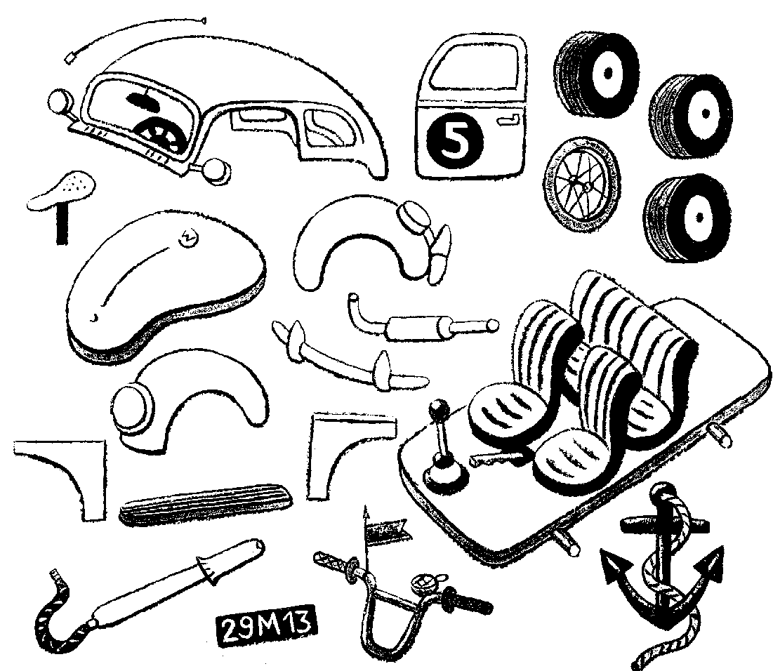 Relie toutes les pièces de ce jeu qui sont utiles pour construire une voiture.