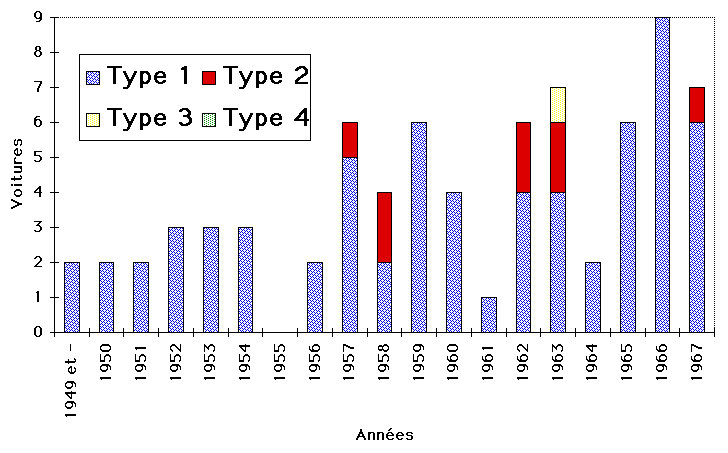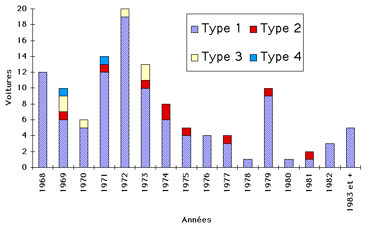 Dans notre pays, la VW Coccinelle a été importée par Amag de 1949 à 1983. Hormis les années 1955 et 1978, au minimum un modèle de chaque année est présent dans le club! L'année la mieux représentée est 1972 avec pas moins de 14 Coccinelles (dont 6 cabriolets), 4 buggys, 1 variant et 1 Karmann-Ghia!