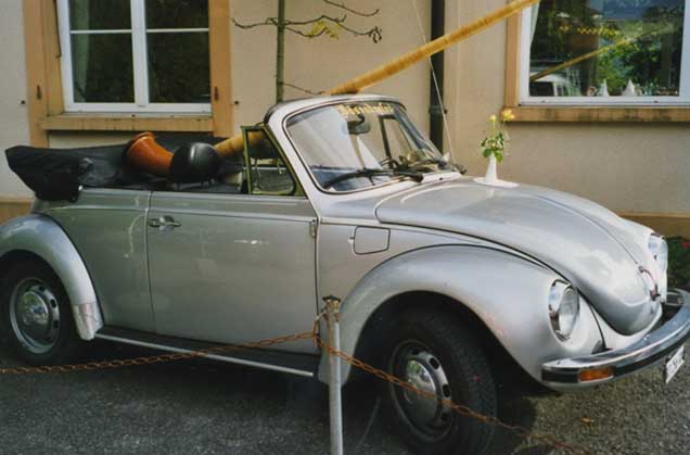 Grande Roue Pour vous permettre d'avoir une vue aérienne du meeting, nous avons fait venir la plus grande roue de Suisse : 32 m. de haut! A cette hauteur, frissons et spectacle sont garantis! Pour 3 petits francs, ne vous en privez surtout pas! Top 15 Un Top 15 récompensera les plus belles voitures. Le jury sera à pied d'oeuvre dès l'ouverture du meeting. Les propriétaires des voitures primées seront avertis par l'intermédiaire d'un petit panneau posé sur le pare-prise de leur voiture le dimanche dès 13h30. Prix spéciaux En plus du Top 15, deux coupes, offertes par les magasins BBT en Belgique et Mago Maggiolino en Italie, récompenseront d'une part une voiture sortant de l'ordinaire et d'autre part une voiture n'ayant subi aucune restauration. Prix Michelin Les pneus Michelin, un de nos 5 sponsors officiels, offrira un magnifique jeu de pneus "flanc blanc" au propriétaire d'une Coccinelle ancienne (jusqu'à 1967). Musée VW de Wolfsburg Comme chaque année, le musée de Wolfsburg est présent à notre meeting avec un de leurs bijoux ainsi que leur boutique. Alors ne manquez pas de passer les voir dans la halle Landi. Voyage à Wolfsburg Amag-Import AG, sponsor officiel, offre à nouveau deux voyages pour deux personnes au lieu de naissance de la Coccinelle, avec visite de l'usine et du musée. Tirage au sort des gagnants par les numéros des inscriptions. Maquillage du visage en coccinelle Un classique de notre meeting. Durant tout le week-end, deux personnes seront à votre disposition pour vous dessiner de jolies coccinelles sur votre visage. Vin d'honneur des présidents de club C'est devenu une tradition, le samedi à 16 heures, un vin d'honneur sera offert aux présidents de club devant la halle Landi. Apéritif A l'intention de tous les participants, un apéritif sera offert par la commune de Château-d'Oex à 17 heures au centre du village. Pour s'y rendre ( 8 minutes à pied!), un cortège sera formé derrière la Coccinelle-diligence. Départ du cortège à 16h45. Bal du vendredi soir et du samedi soir Comme l'année dernière, une soirée disco sera organisée les deux soirs. Ambiance garantie! Spectacle du samedi soir Lors de la soirée disco du samedi soir, un spectacle d'une bonne heure vous sera proposé. Au programme : danse, ballet, magie et culturisme. Début du spectacle à 21 heures. Feu d'artifice Pour marquer le 10e anniversaire du meeting, la commune de Château-d'Oex, l'Officie du Tourisme, les hôteliers et commerçants du village vous offrent un magnifique feu d'artifice. Coup d'envoi à 22h00. Bourse de pièces d'occasion Une bourse de pièces (swap meet) aura lieu sur le terrain même du meeting. Cette bourse est réservée aux particuliers. Aucun revendeur professionnel, ni la vente de pièces neuves ne seront tolérés. Balade touristique Cette année, la balade touristique reprend le parcours originel (Château-d'Oex - Gstaad - Les Diablerets - Les Mosses - Château-d'Oex). Cependant, pour apporter un peu plus d'animation à celle-ci, deux départs seront donnés : un dans chaque sens. Ainsi, en plus du plaisir de rouler en caravane, vous aurez le bonheur de croiser plus de 200 Coccinelles ou dérivés. Le rêve ! |