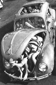PS Ces records n'ont pas été enregistrés dans le Guiness Book en raison du caractère dangereux de l'opération (risque d'étouffement). Contrairement à la photo, notre record a été établi en n'utilisant que l'abitcle de la Coccinelle ! |