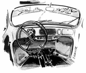 La forme de la Coccinelle est "indémodable". C'est, entre autres, une des nombreuses raisons de son succès. Cependant, quelques détails de sa silhouette ou de sa conception commencent à dater. Ainsi, son moteur placé à l'arrière n'a pas fini de surprendre les personnes de la nouvelle génération. Même étonnement face au tableau de bord. Un tableau de bord comme on n'en fait plus depuis longtemps sauf sur... la Coccinelle qui est toujours construite au Mexique, 63 ans après sa présentation officielle! Dans sa longue carrière, le tableau de bord de la Coccinelle a subi un lifting à plusieurs reprises. Le premier changement important est intervenu en novembre 1952, juste avant l'apparition de la vitre ovale en remplacement des deux petites vitres arrière. Le 2e changement est apparu en août 57, simultanément avec l'arrivée de la vitre arrière rectangulaire. Ce tableau de bord est resté le même jusqu'en 1965 où, à partir du mois d'août (début année modèle 1966) sont apparues des ouïes pour la ventilation. Puis, la dernière grande modification est intervenue au début des années 70 avec l'apparition du plastique qui a recouvert une partie du tableau de bord, jusque-là entièrement métallique. Question De quelle génération date le tableau de bord représenté ci-dessous?