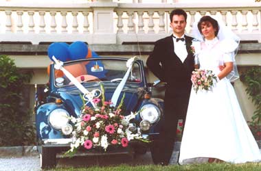 inscrites à ce service. Pour tous ceux qui n'ont jamais fait de mariage avec leur Coccinelle, voici en quoi consiste ce service. 1) faire décorer sa voiture en fonction des voeux des futurs mariés. En général, les mariés laissent le choix du fleuriste au propriétaire de la Coccinelle tout en précisant le genre de décoration qu'ils souhaitent ainsi que le ton dominant des fleurs. Il arrive parfois que les mariés ne désirent pas de fleurs, mais uniquement un ruban. 2) aller chercher la mariée à son domicile et la conduire à l'église 3) conduire les mariés de l'église à la