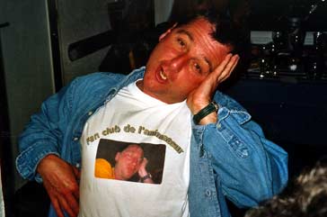 ![]() L'animateur et "son" T-shirt! Les retrouvailles avec Nino Fabbri, notre membre du comité exilé au siège de Super-VW-Magazine à Lège-Cap-Ferret a également été un moment très apprécié. Et nous avons pu constater avec plaisir que pour Nino, collaborateur technique à la revue Super-VW-Tech, tout se passait pour le mieux et qu'il s'était bien adapté à sa nouvelle patrie. Au niveau des activités, nous avons profité de notre présence au meeting pour visiter la pointe de Lège Cap-Ferret et la dune du Pilat ainsi que pour déguster quelques spécialités de la région.