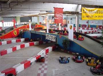 ![]() Le passage spectaculaire du pont! A cause du temps pas terrible le matin et de la piste mouillée, nous n'avons pas pu utiliser la partie extérieure du circuit, avec 2 grandes lignes droites et quelques virages qui rallongent sensiblement ce circuit. C'est dommage, sans cette partie extérieure, c'est un peu court et il est vrai que le circuit de Payerne où nous avons fait les 2 premiers Grand Prix est plus intéressant et plus attractif, mis à part les 2 ponts. L'équipe de Payerne est également plus sympa et plus pro dans la gestion de cette attraction. Par contre, ce circuit dispose de karts