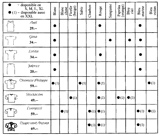 sur commande (il n'y aura pas de stock). Choix d'habits Remarques - pour la veste de pluie, le logo doit être légèrement modifié. Aussi, celle-ci ne sera produite que s'il y a un minimum de 10 pièces commandées. - les frais de port et emballage seront facturés 5 francs. - renseignements complémentaires auprès d'Olivier Guignard, tél. 021/944.31.31 - la commande de vêtements est réservée aux membres du club