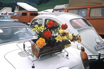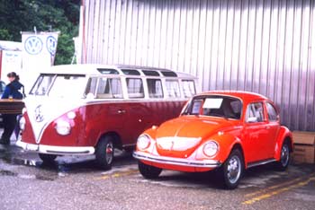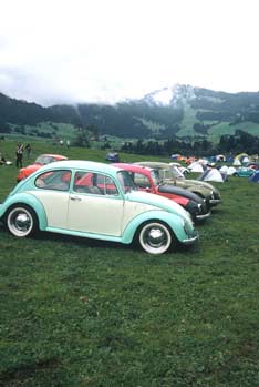 Les organisateurs du 6e meeting international VW de Jona / Rapperswil n'ont vraiment pas eu de chance! Leur meeting a été arrosé comme jamais : il a plu sans interruption du vendredi 9 au dimanche 11 août. Quand on sait la somme de travail que demande l'organisation d'une telle manifestation, il y a de quoi se taper la tête contre les murs. Cependant, faisant bon coeur contre mauvaise fortune, les organisateurs n'ont jamais baissé les bras et c'est avec le sourire que nous avons été accueillis. Tout s'est déroulé comme si de rien n'était. Chapeau. Finalement, malgré ce temps exécrable, plus de 200 voitures ont fait le déplacement. Quand on dit que rien n'arrête les passionnés de la bête à bon dieu, ce ne sont pas que des paroles en l'air!