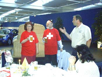 Des changements judicieux Autre succès, le fait d'avoir mis en location l'ensemble des stands de nourriture. Cela nous a déchargés d'un gros poids au niveau de l'organisation sans trop grever le budget final. En ce qui concerne le repas des bénévoles, là aussi, la solution mise en place par Samy Isoz (repas préparés par le buffet de la Gare et coin à manger réservé aux bénévoles) a été couronnée de succès. Cette année, l'entier de la halle Landi a été réservé à la partie récréative. Ainsi, le musée VW et la boutique Amag ont été déplacés dans une tente située juste à l'entrée du terrain principal. Une solution qui a permis aux participants d'être plus à l'aise dans la halle Landi sans pour autant prétériter le musée de Wolfsburg. D'autre part, nous inaugurions cette année le nouveau bar que nous avons fait construire sous les directives de Cédric Perrier. Un bar qui nous a bien simplifié la tâche et qui a été décoré avec beaucoup de goût par la responsable du bar, Delphine Vallon.