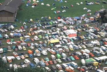 La ruée du vendredi En effet, on pouvait compter plus de 100 voitures présentes dans le village de Château-d'Oex, le jeudi soir 29 août, veille de l'ouverture officielle. Et 24 heures plus tard, 707 voitures étaient déjà inscrites officiellement, soit près de 200 de plus qu'en l'an 2000 à la même heure. Cet afflux massif de voitures n'alla pas sans nous causer quelques soucis. Heureusement, le stress que nous avons vécu jusqu'au samedi soir avec tous les problèmes inhérents à cet état de fait (tension, énervement, désespoir, etc.) n'a pas déteint sur le meeting. Pour s'en convaincre, il suffit de lire les commentaires élogieux qui ont été inscrits dans le livre d'or d'une part et sur les différents sites internet d'autre part.
