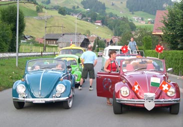 Dans le cadre des festivités du 1er Août, l'OT de Château-d'Oex a invité toutes les sociétés locales à participer activement au traditionnel cortège en les motivant à faire preuve d'imagination et d'originalité. Cela a donné lieu à un cortège haut en couleur, cortège auquel 4 voitures et 2 bus du club ont participé. Et à voir l'accueil très chaleureux réservé à notre club, on peut vous assurer que notre meeting VW à Château-d'Oex est très apprécié par la population locale. Avant le cortège, les membres