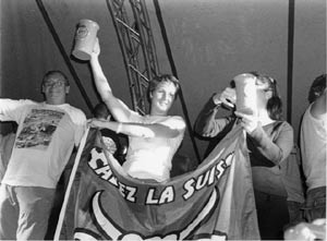 Enfin les 7 et 8 août 2004, Olivier et moi-même nous sommes rendus à Spa-Francorchamps où se tenait le Bug Show international sur le circuit du grand prix de Belgique. Il s'agissait de faire une visite de courtoisie à nos amis belges toujours nombreux à Château-d'Oex. Le meeting est très spécial avec ses nombreuses particularités : un camping immense où se côtoient dans le désordre tous les véhicules imaginables. L'attraction principale est constituée bien sûr par le circuit où des courses de Drag ont lieu (pour les non initiés le Drag est une Coccinelle au moteur poussé qui fait des accélérations fulgurantes et qui vous laisse ébahi). On pouvait également admirer des acrobaties à moto et la démonstration d'un jet car : il s'agit d'une voiture sur laquelle on a greffé un réacteur d'avion à réaction qui développe six mille chevaux et qui passe devant vous dans une gerbe de flammes et de fumée. Vous voyez que l'on ne sait plus quoi inventer pour distraire les foules. L'animation du samedi soir vaut également le déplacement avec le traditionnel concours des présidents (prochaine discipline olympique à Pékin 2008) et le non moins célèbre défilé de mode (Jean-Luc saura de quoi je parle). Cet été il y en avait pour tous les goûts et ceux qui se sont ennuyés ne pourront s'en prendre qu'à eux-mêmes. Ils ont pu toutefois se rattraper en venant au meeting de Château d'Oex. Marc Bonvallat