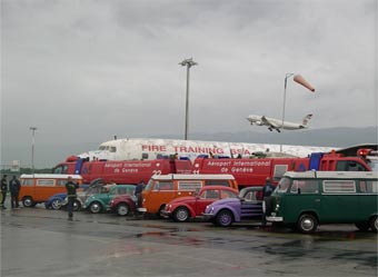 Comme première sortie de l'année, Jean-Luc Peter nous a proposé une "virée" du côté de Genève avec, comme double objectif, la visite des pompiers de l'aéroport de Cointrin d'une part et un passage au musée de l'automobile de Genève d'autre part. Depuis le temps qu'Alain Saugy nous demandait d'organiser une visite de ce musée, on ne pouvait décemment pas se rendre au bout du lac sans faire un petit saut à ce musée! Mais voilà, entre les désirs et la réalité, il y a parfois des imprévus désagréables, comme par exemple la fermeture provisoire du musée pour cause de transformations. Désolé Alain, essayé, pas pu ! Ce sera pour une autre fois. Par contre, la visite des pompiers de l'aéroport de Genève a été fort intéressante. Les quelque 30 personnes inscrites à cette sortie ont été impressionnées par le système anti-incendie mis en place par l'aéroport de Cointrin. Que ce soit au niveau du matériel à disposition, de la formation et de l'entraînement des sapeurs-pompiers ou de l'organisation des interventions, rien n'est laissé au hasard. Sous la conduite du sergent Clot, les participants ont pu se rendre compte qu'au niveau de la sécurité, on ne plaisante pas du côté de Cointrin. L'intervention sur un avion en feu (exercice) a été spectaculaire alors que la photo de famille avec nos VW sur le tarmac de l'aéroport restera comme un moment fort de la journée. Une journée qui s'est poursuivie avec l'excellent repas pris au restaurant "Le Smash" à Meyrin, avant de se terminer par un dernier verre, non pas au Signal de Bougy comme initialement prévu, mais au restaurant de l'Esplanade à Aubonne, à cause d'un temps pas très accueillant. Qu'à cela ne tienne, la journée a été très agréable et... instructive. Un grand merci au GO du jour, Jean-Luc Peter.