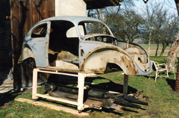 Voici une photo, prise en 1978, de la première première Coccinelle de Bernard Equey. Il s'agit d'un modèle de 1967, 6 volts. Elle est équipée de jantes 356, achetées 50 fr à un copain qui avait mis la sienne sur le toit, avec des pneus Michelin 165x15 à l'avant et 185x15 à l'arrière. On était loin des tailles basses, les séries 70 venant juste de sortir! Pour l'anecdote: les jantes sont parties à la casse avec la Cox (on est con quand est jeune, Bernard dixit!).