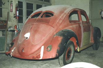 ![]() ![]() A gauche, une fois les travaux de tôlerie terminés, le tout est remonté "à blanc" pour ajustage. Après quoi, la belle aura droit à sa robe définitive. A droite, la voiture enfin terminée ! |