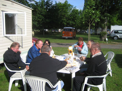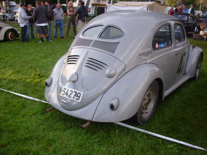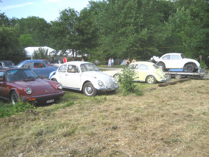 Une fois de plus, le Lémania Coccinelle Club n'a pas hésité à parcourir plus de 600 km pour participer à cette grande manifestation. Même si la Coccinelle a une réputation de grande fiabilité, le déplacement a commencé de façon mouvementée pour NâNâ dont la pompe à essence de sa Coccinelle refusa tout service dès le passage de la douane à Vallorbe. La solidarité entre passionnés VW n'étant pas un vain mot, Jean-Luc s'est spontanément proposé pour remorquer la voiture de NâNâ jusque chez lui à Senarclens afin qu'il puisse changer de monture! Ce fut, heureusement, le seul incident du week-end à déplorer. Entre apéro convivial, repas "gastronomique" et ambiance chaleureuse, les 8 membres du club ayant effectué le déplacement ont passé un excellent week-end, à peine refroidi par la météo de misère et un prix d'entrée au meeting pour le moins excessif !