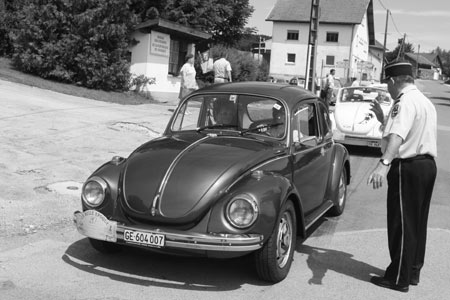 Le 24 juin dernier, le club Auto-moto la Belle Epoque de Pontarlier a fêté son 20e anniversaire. Invité aux festivités, le Lémania Coccinelle Club a naturellement répondu présent. Les 8 véhicules annoncés étaient tous fidèles au rendez-vous à la douane de Vallorbe à 8h45. Et fait assez rare en ces temps, c'était toutes des Coccinelles. Départ pour Pontarlier à 09h00. Un trajet assez court, puisqu'après Jougne, le panneau indique 18 km. Arrivés au périphérique de Pontarlier, une signalisation nous indiquait la route à suivre pour se rendre sur le lieu de la manifestation. Dès notre